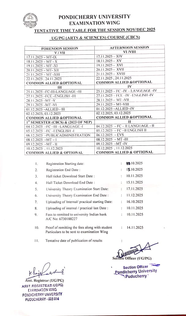 TENTATIVE SCHEDULE OF UG&PG CBCS ARTS& SCIENCE -NOV/DEC 2025