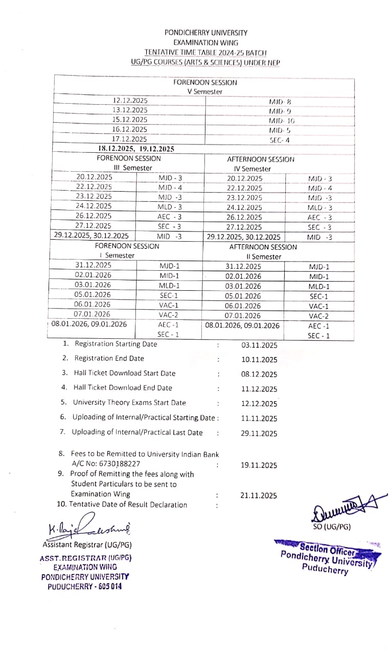 TENTATIVE SCHEDULE OF UG NEP ARTS& SCIENCE -NOV/DEC 2025